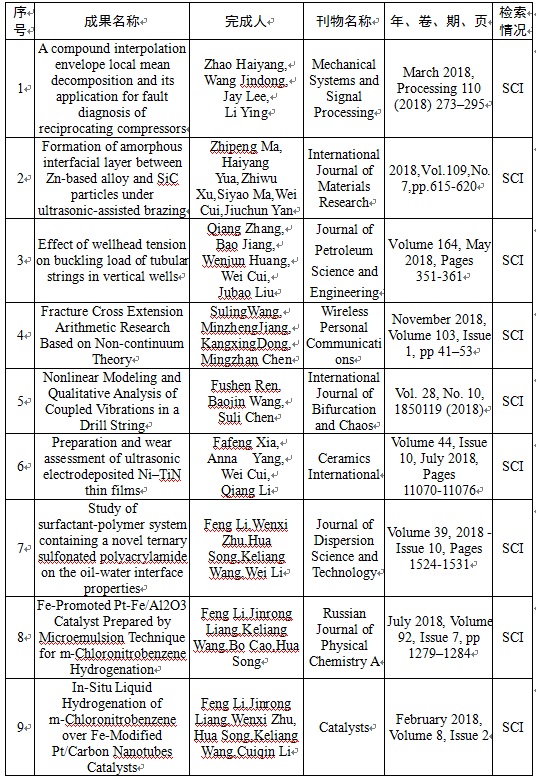 实验室充分利用自身科技资源,努力创造出优秀的科研成果,以推动理论和技术的创新,打造优势与特色。注重对国家、行业急需关键技术的基础理论研究,承担国家自然科学基金、中石油中青年科技创新基金、黑龙江省自然科学基金、高校博士点青年基金等基金项目;拓展与企业和科研管理部门的合作空间,同黑龙江省科技厅、黑龙江省教育厅、大庆油田公司、大庆石化公司等部门和企业合作开展科学研究和技术服务。近三年实验室主持或参与国家级项目23项、省部级项目18项;获省部级科技进步奖5项;获得具有自主知识产权的发明专利42项;发表论文159篇,其中SCI、EI收录论文85篇;出版专著3部。