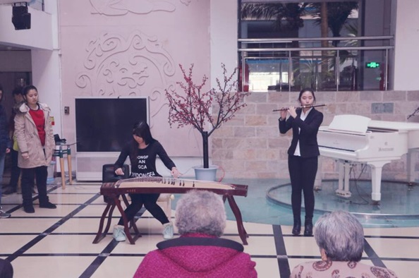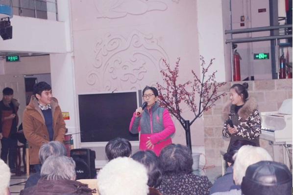 下午两点整,为老人们精心准备的演出拉开了帷幕。在优美动听的钢琴曲过后,王晶老师发表了精彩的讲话,表达出了自己以及全校师生对老人们的关怀。来到老人们身边的志愿者们,与老人谈心,气氛十分温馨、融洽。志愿者们还为老人们送上了水果和围巾手套,最后,精彩的表演在志愿者们的合唱声中落下了帷幕。随后,志愿者们与老人们合影留念。本次爱心活动圆满满结束。
