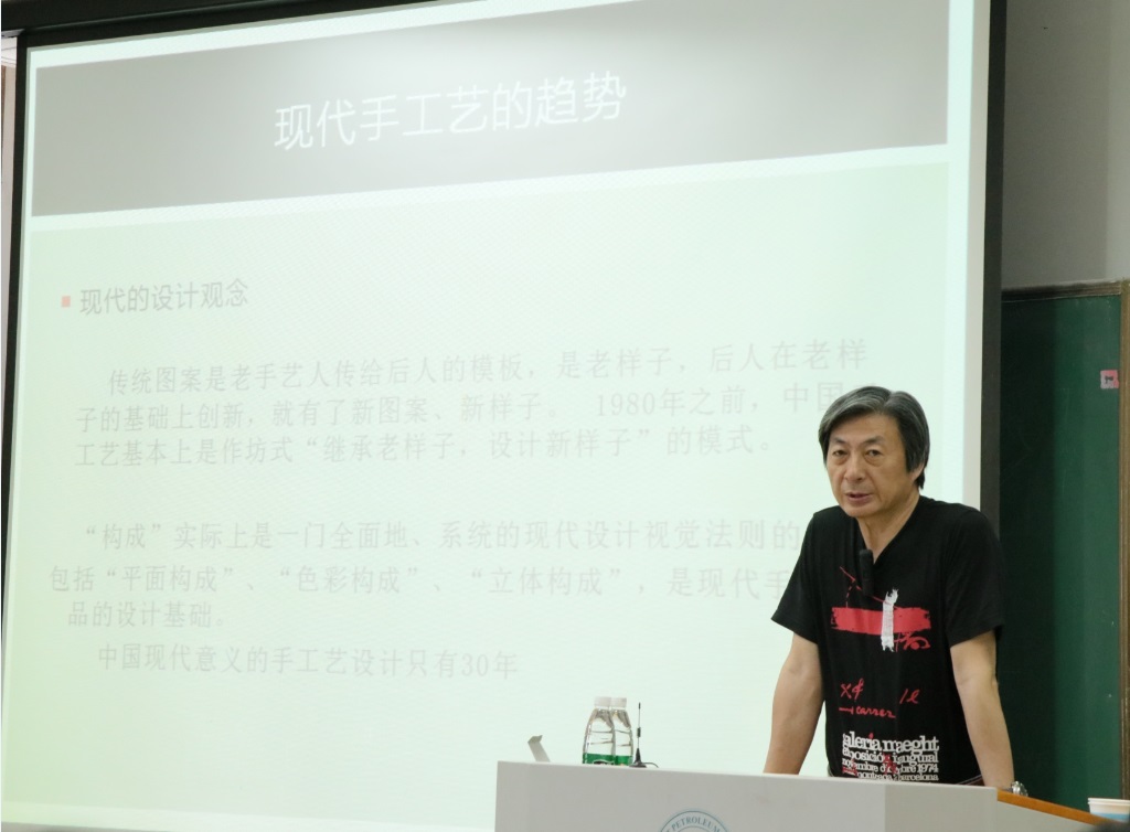 田卫平教授从现代手工艺的趋势谈起,讲述了现代的设计观念、现代的审美观念、现代手工艺类别等方面的知识;结合自己的作品以及国内外经典设计作品讲述了造型艺术、审美意识、就工业设计专业学生在校期间应具备的能力素质,专业知识如何扎实掌握以及未来的职业潜力等进行了热烈的互动交流。