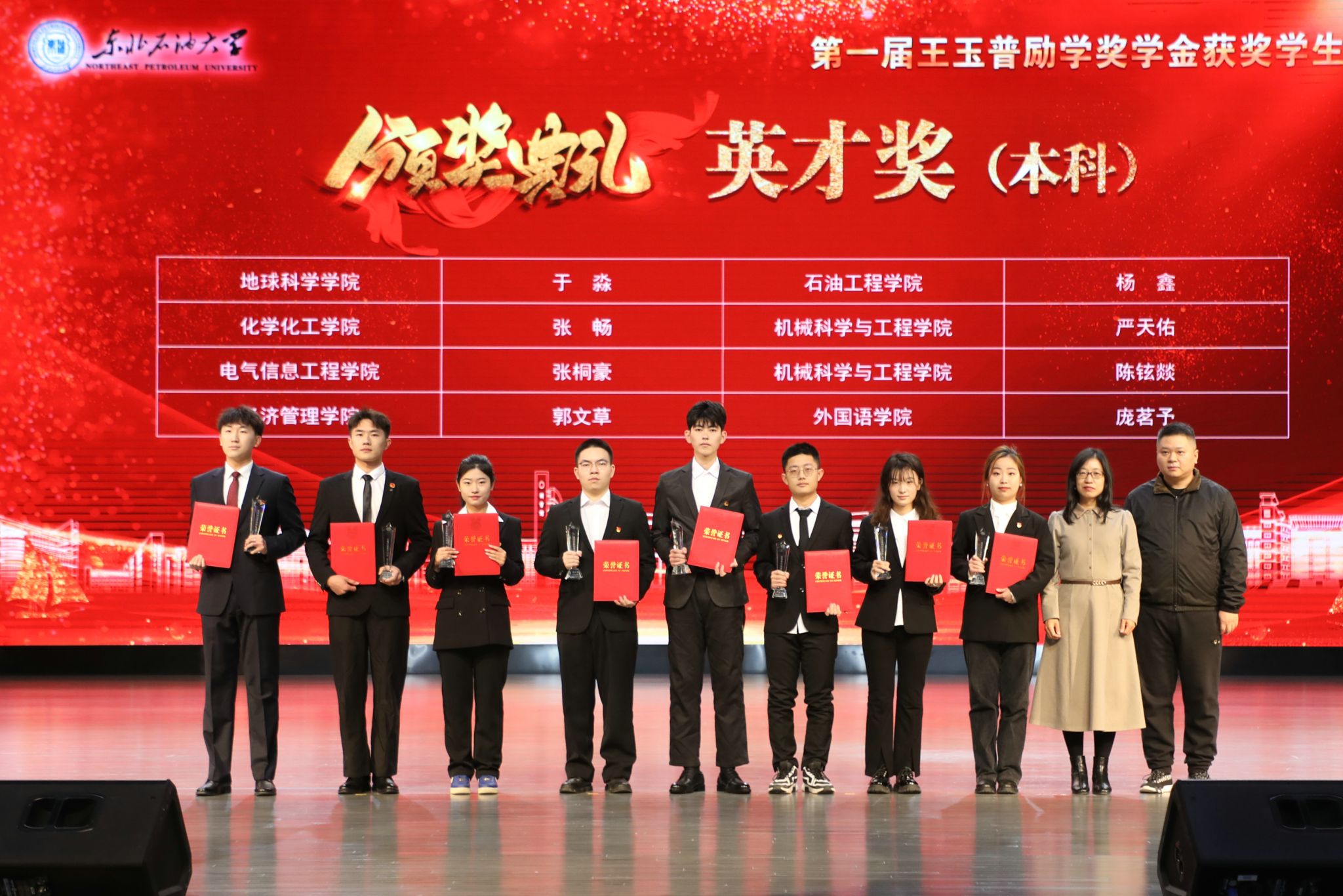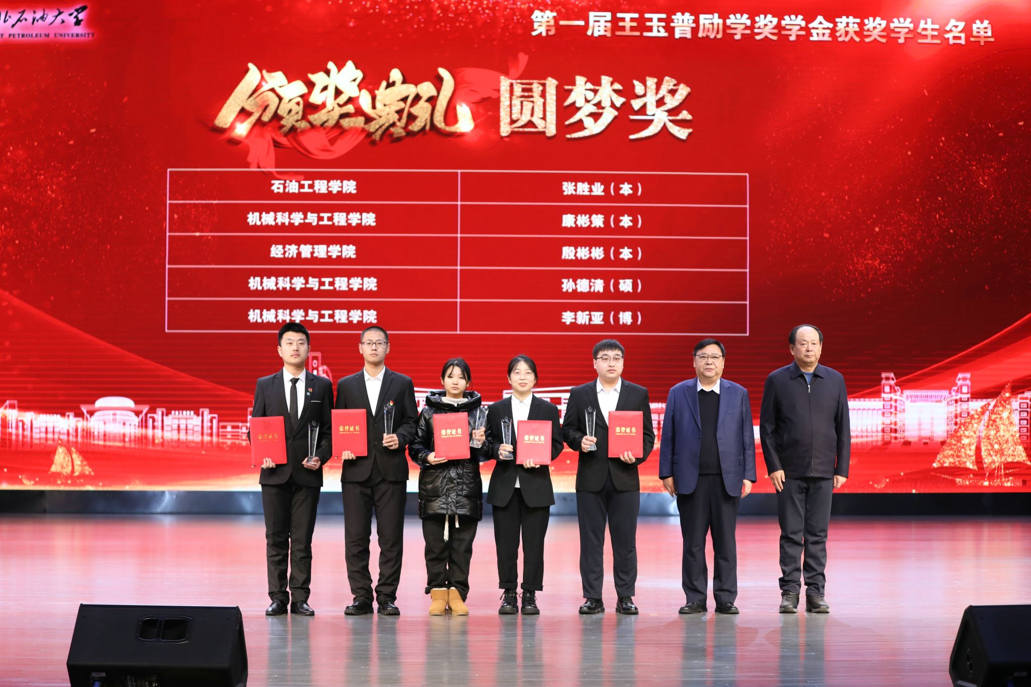 近日,best365第一届王玉普励学奖学金颁奖典礼在音乐厅隆重举行,best365校友、名誉院长刘合院士,中国工程院李阳院士,中国工程院工程管理学部办公室主任聂淑琴,王玉普院士家人李鹏宇,深圳普华生态科技有限公司董事长赵普平,华油惠博普集团终身名誉董事长、创始人黄松,best365校友、原大庆油田采油四厂厂长杨野,校党委书记付晓飞、校长董宏丽等党委班子成员及师生代表参加。