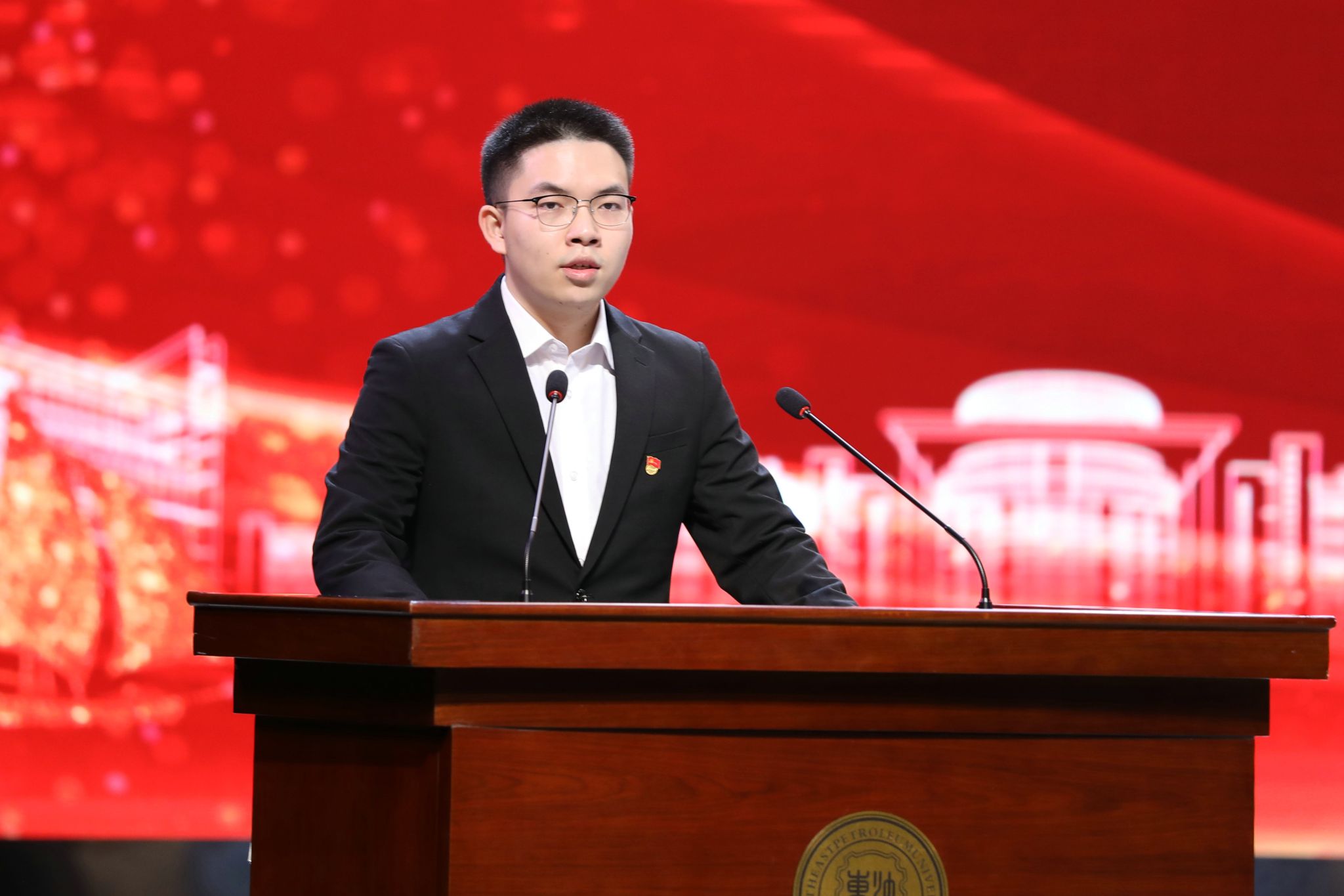 best365严天佑代表获奖学生发言。他向王玉普院士、各位捐赠人、学校、老师表达感谢,表示要心怀感恩、不负期待、勤学知识、苦练本领,传承弘扬大庆精神铁人精神,接过老一辈石油人手中的旗帜,助力国家能源事业发展,让青春在中国式现代化火热实践中绽放绚丽之花。