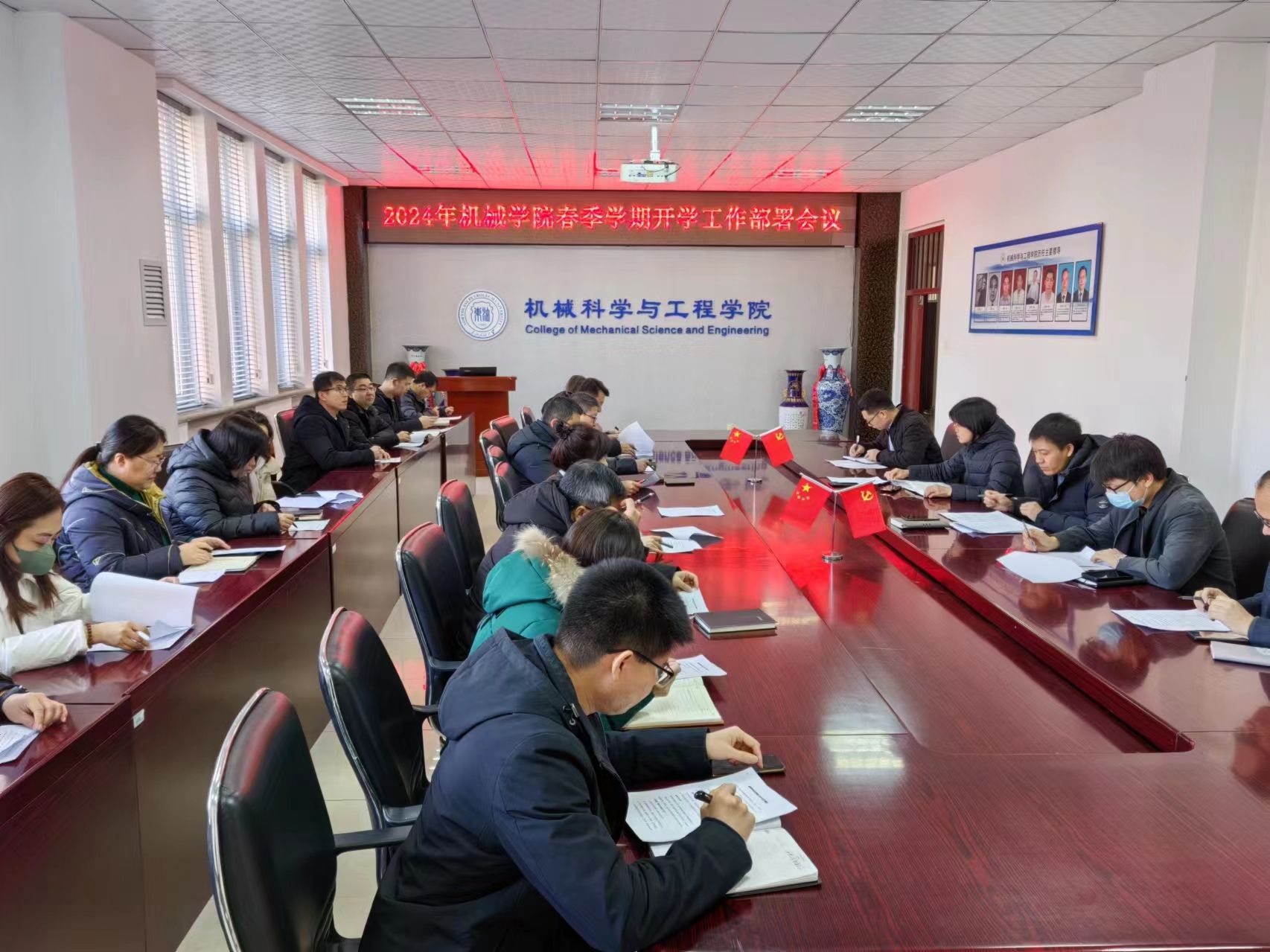 学院党委书记王勇对2023年党建工作进行了梳理,提出了2024年党建工作思路和计划,要求全体干部统一思想,坚定信心,对照学院“1363”发展规划,认真谋划、各尽其职,奋力开辟高质量发展新赛道。会上,党委副书记闫超、副院长董康兴分别对各自分管的本科教学、科研、研究生培养、学科、学生工作、纪检、工会及校友联络等进行了工作布置,并提出了明确要求。