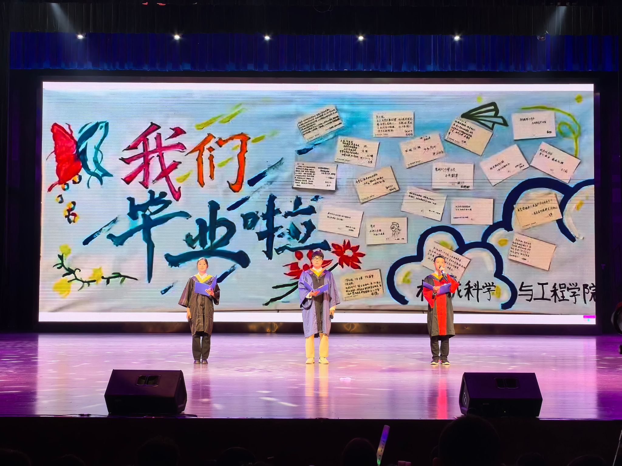 短剧《共同的记忆》、歌曲《一路生花》表达了毕业生们的成长历程,充满了对未来人生道路的热烈期待。