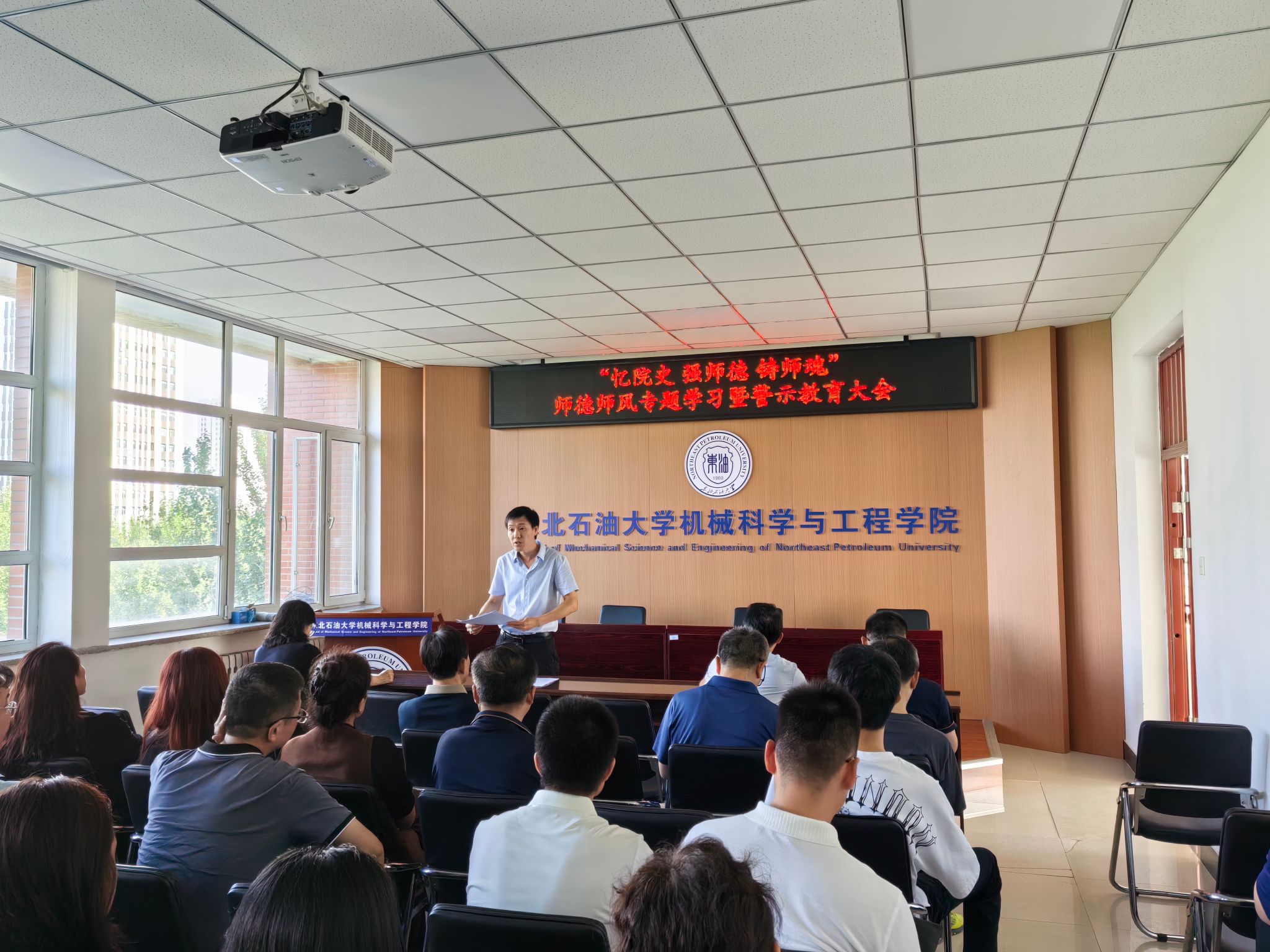 为进一步推动深入贯彻中央八项规定精神学习教育走深走实,强化师德师风建设,在第41个教师节来临之际,机械学院将“忆院史 强师德 铸师魂”师德师风学习作为2025秋季开学全体教职工大会的“第一堂课”,组织全体教职工开展师德师风专题学习暨警示教育大会。